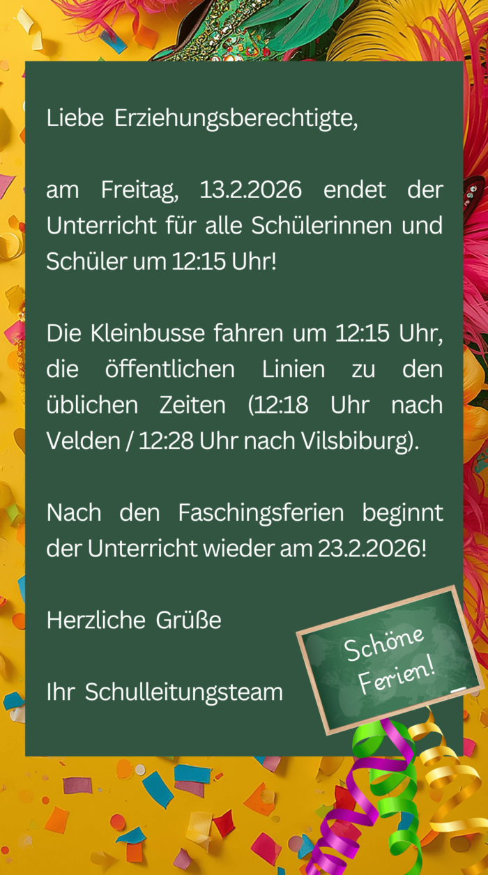 Unterrichtsschluss vor den Faschingsferien